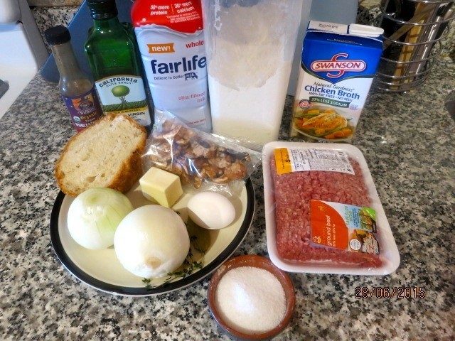 В миске смешиваем фарш, луковое пюре, вустерский соус, яйцо и отжатый размоченный хлеб. Солим и перчим по вкусу, формируем, жарим.