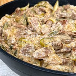 Мясо по-самарски отличается сбалансированным сочетанием текстур и вкусов, где обжаренные кусочки говядины соединяются с луком, маринованными огурцами и сметанным соусом. Пряности усиливают естественный аромат мяса, а сметана создаёт мягкую консистенцию, которая делает каждый кусочек нежным и насыщенным. Такое приготовление подходит для подачи с любым гарниром или даже просто с хлебом. ...