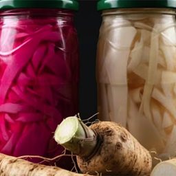 Обычный перемолотый хрен быстро теряет аромат и силу, а этот способ сохраняет все, что в нем главное — ядреность, свежий запах и живой вкус. Нарезанный ломтиками и слегка бланшированный корень впитывает маринад, становится хрустящим и чуть сладковатым. Особая закуска не требует стерилизации, хранится в холодильнике и подходит и к мясу, и к борщу, и просто как добавка к хлебу. ...