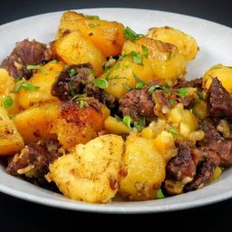 Медленное томление в казане меняет структуру говядины, делая ее мягкой и рассыпчатой, а картофель — пропитанным мясным соком и сливочным маслом. При этом активное время приготовления занимает всего 15 минут: укладываем все слоями и отправляем на огонь. Мясо получается нежнейшим, даже самая капризная говядина томится до состояния, когда ее буквально можно есть губами. ...