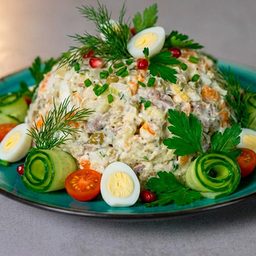 Килька в томатном соусе обычно воспринимается как простая закуска, но в салате она звучит гораздо интереснее. За счёт яиц и овощной зажарки вкус становится мягче и объемнее, а сам салат получается сытным и гармоничным, без сложных приёмов и редких ингредиентов.