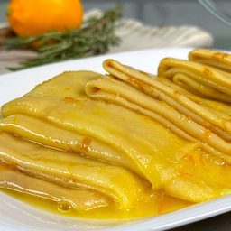Знаменитые блинчики Креп Сюзет ценятся за гармоничное сочетание сливочного вкуса тонкого теста и яркой фруктовой кислинки. Соус на основе натурального сока быстро густеет на сковороде, превращаясь в ароматную пропитку, которая заменяет любые другие добавки. Блины пропитываются им насквозь, подача делает блюдо сытным и самодостаточным, оно не требует дополнительных добавок вроде меда или варенья. ...