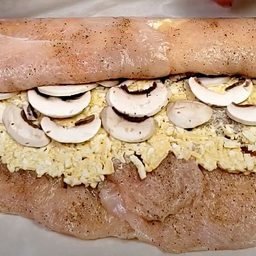 Обычно курицу и салат подают раздельно, но в этом рецепте мы объединим их в одно блюдо. Куриное филе нарезаем тонкими пластами, сверху выкладываем яичный салат, а затем запекаем все вместе в виде аппетитного рулета.