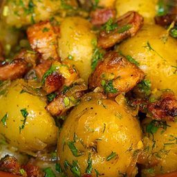 Картофельный салат по-немецки и в классическом варианте получается вкусным. В Грузии этот рецепт сумели довести до идеала, изменив пару важных деталей. В новом варианте бекон обжаривается до румяной корочки, лук карамелизуется, а нежный беби-картофель впитывает ароматную заправку с уксусом и бульоном. Вкус получается глубоким, насыщенным, с легкой кислинкой и ароматом зелени — то, что нужно для уютного домашнего ужина. ...