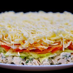Слоями мясо, грибы, сыр и сладкий перец. Шикарный салат на Новый год