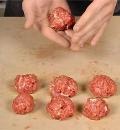шаг 4.Скатать из получившегося фарша шарики диаметром примерно 3,5 см. Обвалять каждый шарик в муке и обжаривать в разогретом масле по 2 мин. с каждой стороны.