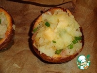 Выкладываем начинку в картофельные чашечки и отправляем обратно в духовку примерно на 10 минут или пока сыр не расплавится.