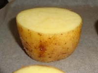 Выложите картофель на противень срезом меньшего диаметра вниз.
