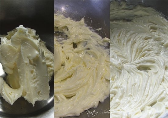 Не выключая миксера, добавлять белки. Взбить в очень пышную, гладкую крем-массу.