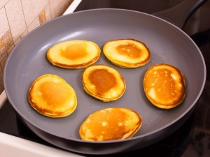 На смазанную маслом сковороду выложить тесто. Жарить до золотистого цвета.