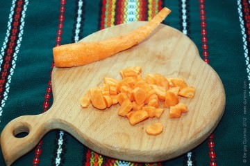 Морковку очистить и нарезать крупными кусочками. Можно даже кружочками. Особенно, если морковка молодая и сладкая.