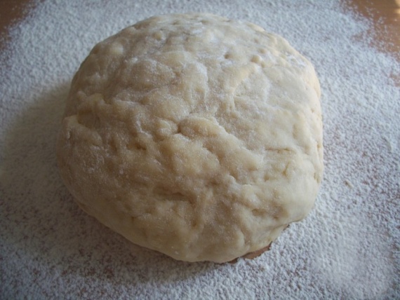 Раскатать половину теста в большой тонкий пласт.