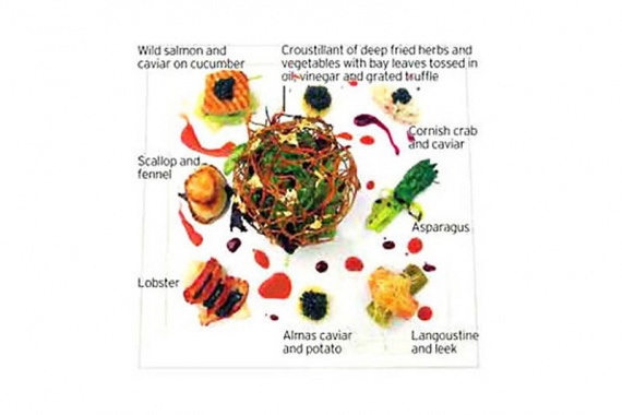 Самый дорогой салат в мире носит название “Florette Sea&Earth”. Его Вам приготовят в оксфордском отеле “Le Manoir aux Quat Saisons”. Стоимость одной порции “Флореттских моря и суши” составляет 800 евро, а в состав входит 50 грамм отборной белой белужьей икры, корнуоллский краб, лангуст, лобстер, флореттский молодой салат, немного оливкового масла, красный перец, тертые трюфели, картошка и спаржа. Блюдо украшается золотистой фольгой.