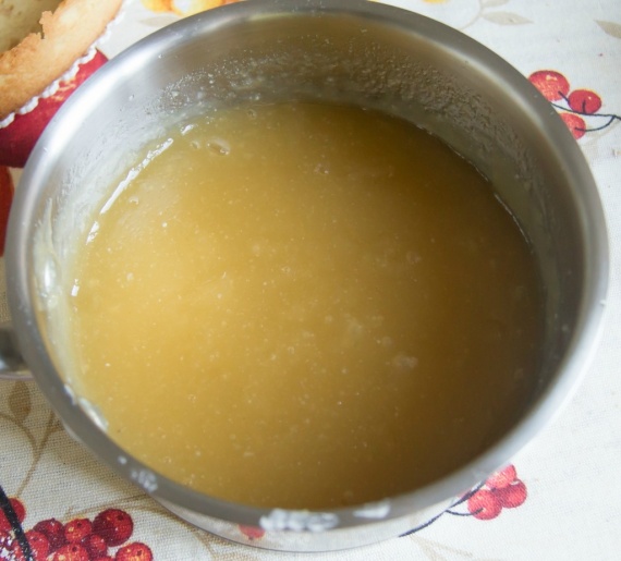 6. Соединить миндаль с загустевшим соком, распределить эту массу по коржу и разровнять поверхность.