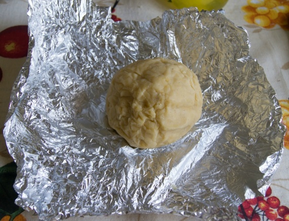 1. Сливочное масло нарезать кусочками. Муку просеять, сделать посередине углубление, в которое поместить нарезанное кусочками сливочное масло, сахарную пудру, яичный желток и ваниль. Размять вилкой или пальцами содержимое углубления, добавить немного муки с краев и перемешать. Лопаткой передвинуть остальную муку с краев к середине и слегка перемешать. Затем порубить мучную массу ножом или лопаткой, чтобы все компоненты соединились в крошку (также как в рецепте малинового пирожного).2. Только теперь тесто нужно вымесить руками до однородной массы и сформировать из него шар. Месить тесто следует не слишком долго, иначе масло расплавится и тесто станет ломким. Также, если тесто слишком получилось слишком густым и не «сцепляется» в шар, нужно добавить 1-2 ст.л. холодной воды. Завернуть получившийся шар в фольгу, поставить в холодильник на 1 часа.