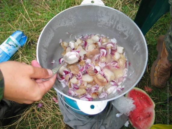 И еще… есть одна традиция: Когда зажарка готова, каждому, кто имел отношение к готовке блюда, наливается 50 грамм, и дается кусочек хлеба. Выпивают за вкусный обед, макают хлеб в зажарку и этим закусывают.