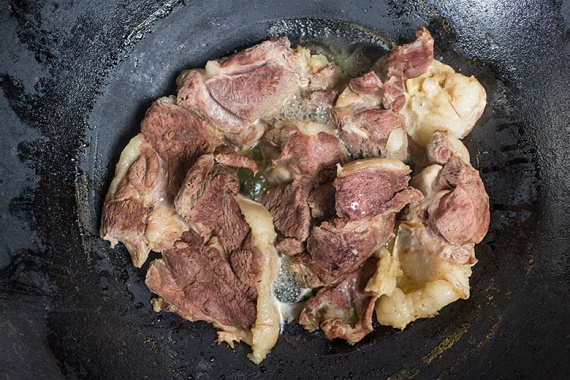 Когда кости начнут свободно выходить из мяса, достаньте его из казана.