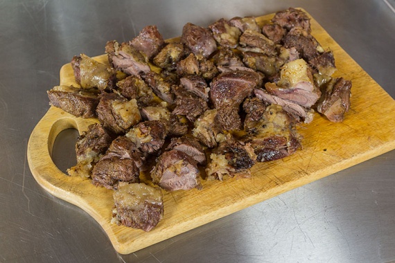 Удалите все кости и порежьте мясо на удобные куски.