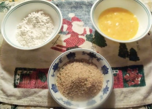 Взбить яйца вилкой. Муку перемешать с перцем и солью.