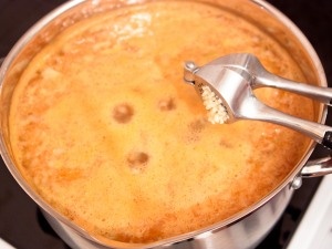Когда суп будет готов, добавить выдавленный через чеснокодавку чеснок, дать настояться под крышкой 20-25 минут.
