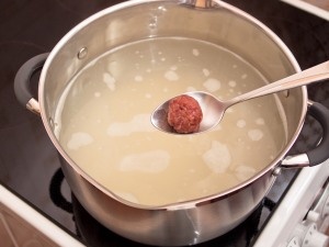 Когда рис закипит, добавить фрикадельки, варить 5 минут.