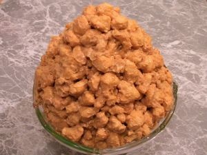 Выпеченное тесто перемешать с кремом.