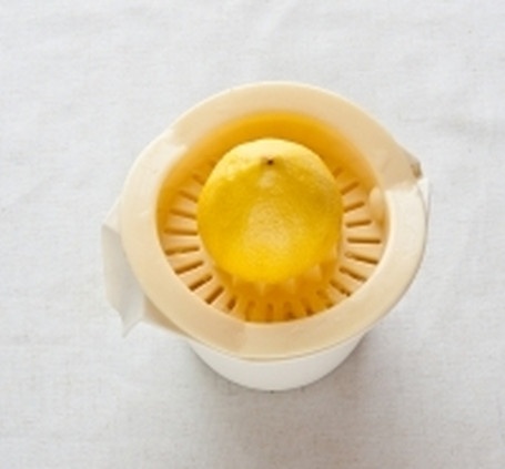 Пока молоко нагревается, выдавить из лимона сок и подготовить дуршлаг, выстелив его двумя слоями марли и поставив на сосуд для стекания сыворотки.
