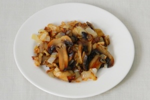 Дальше обжаренные грибы с луком.