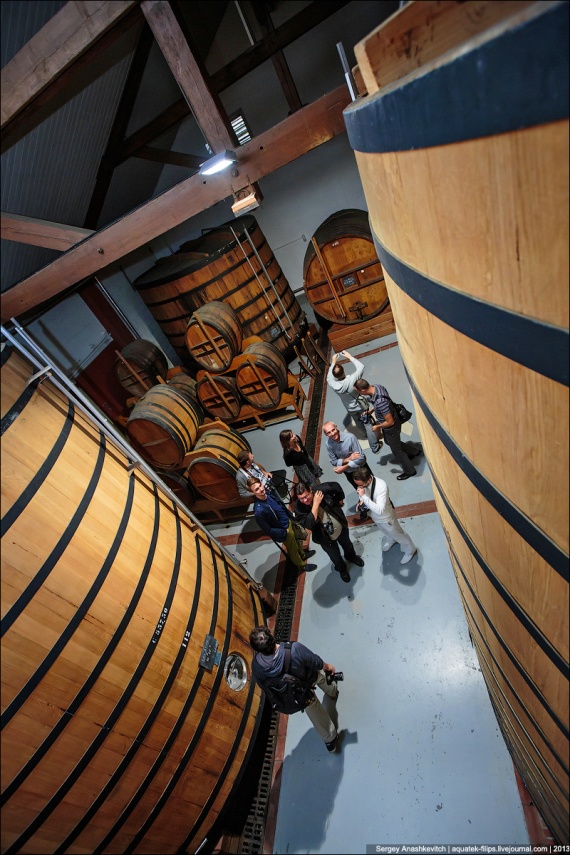 8. Следующий этап — ферментация сидра. Для этого сок заливают в дубовые бочки большого размера, где он находится около 6 недель. Лучшие производители ферментируют сидр дольше, а иногда даже немного выдерживают перед последующей перегонкой. Крупные производители, как правило, сами не выращивают яблоки и не делают сидр, закупая его как сырье в проверенных хозяйствах апелласьона.