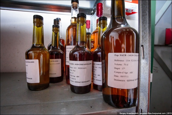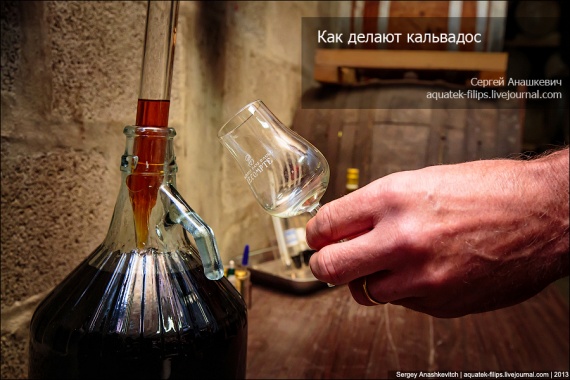 21. Вообще следует сказать, что кальвадос не как вино живет все время в одной бочке. Его регулярно переливают, смешивают с другим кальвадосом, проводя ассамбляж. За всем этим ежедневно следит мастер погреба, постоянно беря пробы и проводя дегустации ароматов и вкуса.