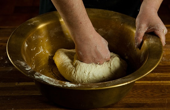 Вместо обычного килограмма муки мы взяли только 800 грамм, потому что у нас была тончайшего помола итальянская мука, предназначенная для приготовления пиццы. Ведь вы знаете, что в зависимости от помола и сорта зерна может варьироваться количество жидкости, необходимое для замешивания теста?