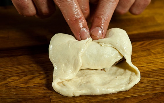 Тянуть пальцами за самые края теста, чтобы защип оставался тонким.