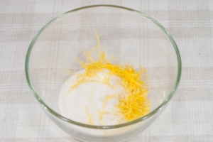 Перетрите цедру с сахаром.