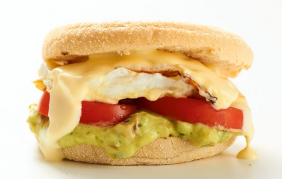 В этот бутерброд входят следующие ингредиенты: помидоры, яйцо, гуакамоле, голландский соус. Все это стоит положить на английскую булочку.