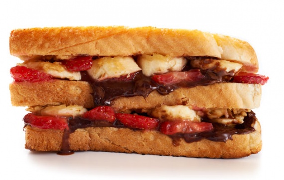 Для этого блюда вам понадобится банан, клубника, Nutella, арахисовое масло, сливочное масло, сладкий хлеб с изюмом и корицей.