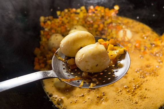Когда яйца пожелтеют, можно приступать к следующему этапу приготовления плова.