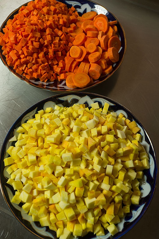 С другой стороны, если порезать морковь совсем тонко, то из нее весь вкус выйдет в масло и зирвак, а сама она останется как вата, если еще и не расползется в кашу.