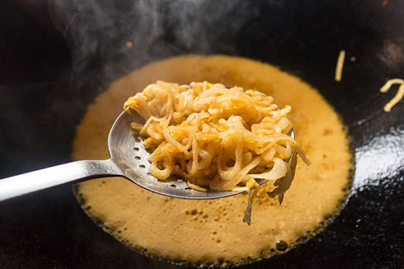 Как только лук начинает менять цвет и уменьшаться в размерах, так и хватит его жарить.
