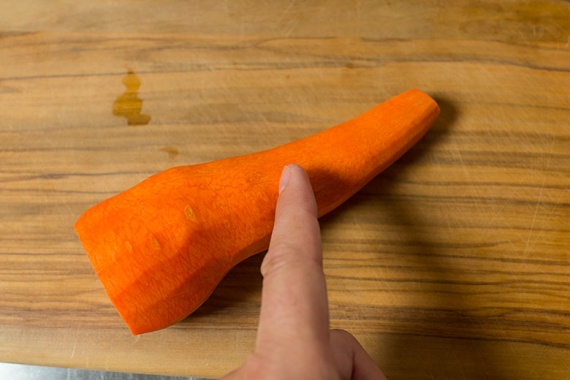 Например, от середины и дальше, где она потолще — кубиками, а от носика начиная и до середины — монетками. Пусть «монеты» из моркови символизируют материальный достаток!
