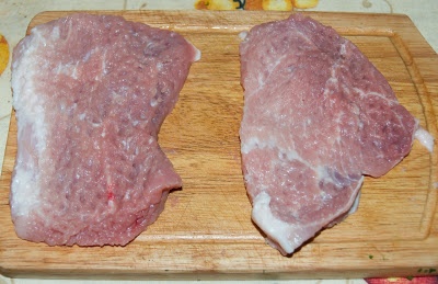 1. Свиные отбивные слегка отбить. Если по краю отбивной идет полоска жира, надрезать её поперек в нескольких местах, чтобы при обжаривании отбивные не деформировались.