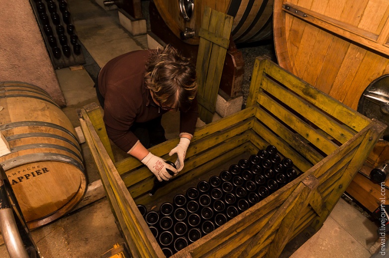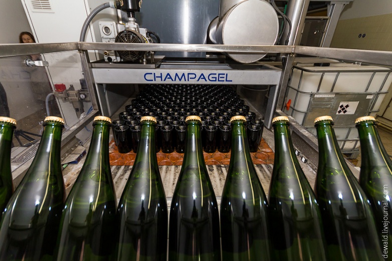 Но мы отвлеклись. После созревания шампанское ждут уже упомянутые ремюаж, дегоржаж и дозаж. Затем, наконец, бутылки отправляются на линию упаковки.