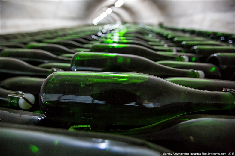 Вы можете представить себе тоннель, где далеко в черноту уходят бесконечные штабеля бутылок с шампанским? 24 штольни, вырубленные в горе. 7 километров (даже чуть больше) — их суммарная длина. До 5 миллионов бутылок шампанского в бесконечных подвалах. Добро пожаловать в Голицынские подвалы завода шампанских вин в Новом Свете.