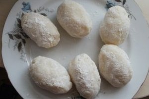 Слегка обвалять картофельные котлеты с сыром в муке.