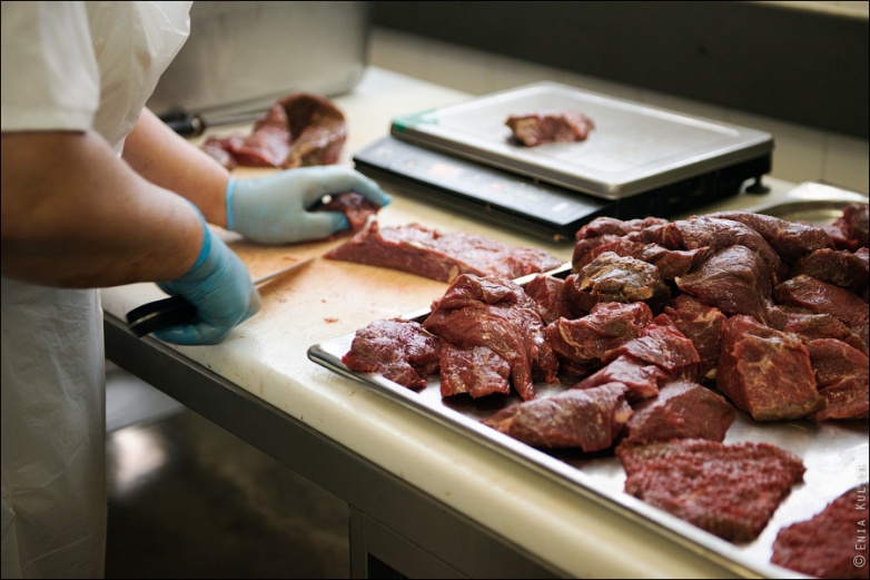 Далее двигаемся в цех полуфабрикатов… Гордость цеха – машина, делающая котлетки!