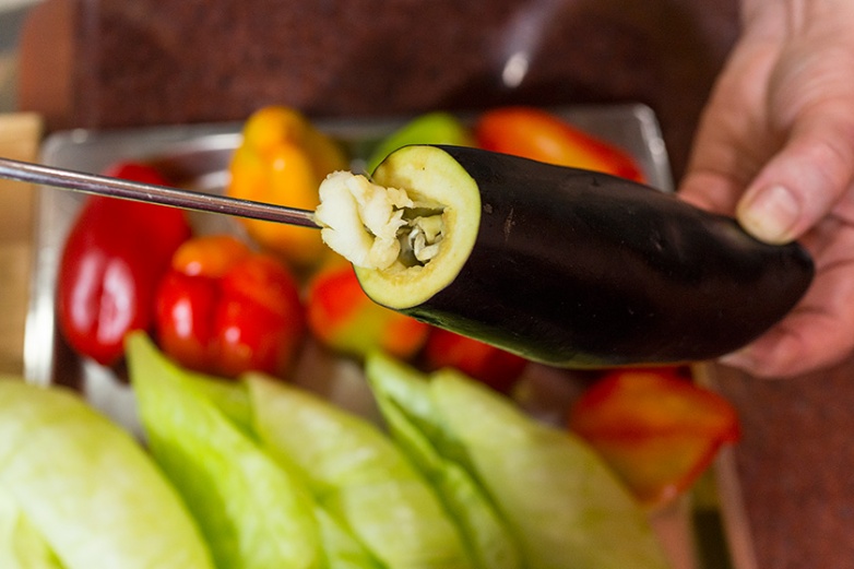 Баклажаны требуют соли. Посолите их прежде, чем начинять фаршем.