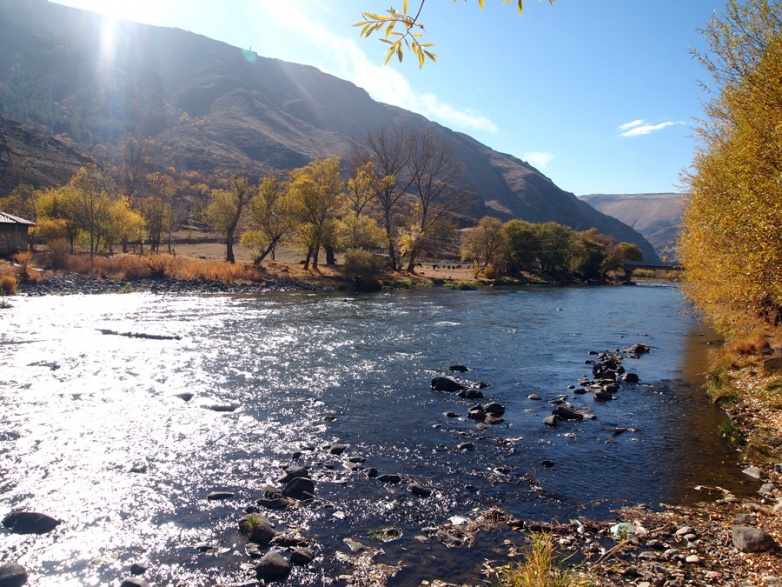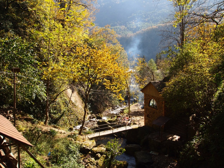 В Вардзии рядом со входом в пещеры есть небольшой ресторанчик возле горной реки. Вот такие виды открываются оттуда