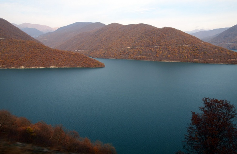 В этом месте находится 14-километровое в длину лазурное водохранилище, из которого берут воду для Тбилиси, а на берегу есть ресторан, который примечателен открывающимися из окна видами: