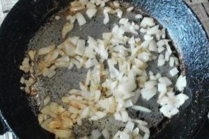 На сковороде, где жарились гречаники, поджарить лук до слегка золотистого цвета.