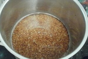 Гречневую крупу перебрать, промыть холодной водой. Можно подсушить на сковороде.