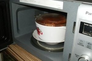 Можно тушить в микроволновке: высокий режим — 3 мин, средне-низкий -15 мин, выдержка в печи — 10 мин.